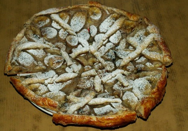 Étape 9Tourte prête à la banane de la pâte feuilletée coupée en morceaux et saupoudrer de sucre en poudre.