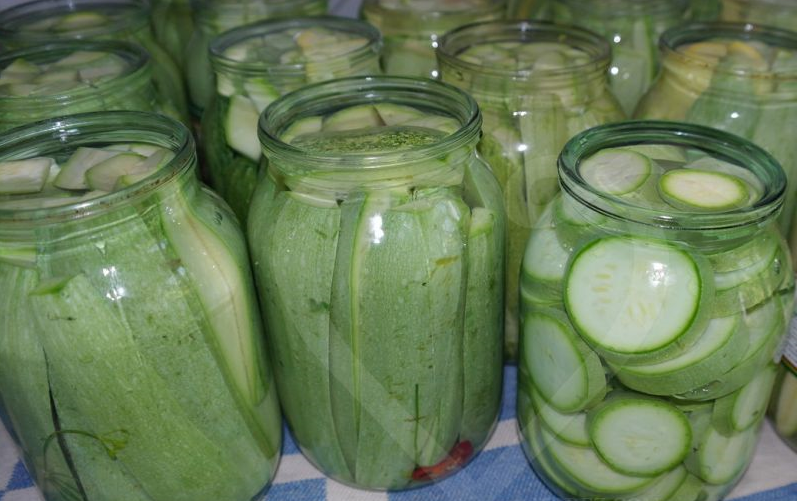 Étape 5 Versez des bocaux d’eau bouillante, couvrez de couvercles en métal et stérilisez jusqu’à ce que la courgette passe du vert au jaune et qu’il ne reste plus que des traînées vertes.