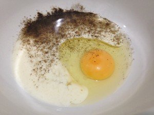 Étape 4 Mélanger la crème sure avec l'oeuf, saler et poivrer. Ajouter la farine et bien mélanger.