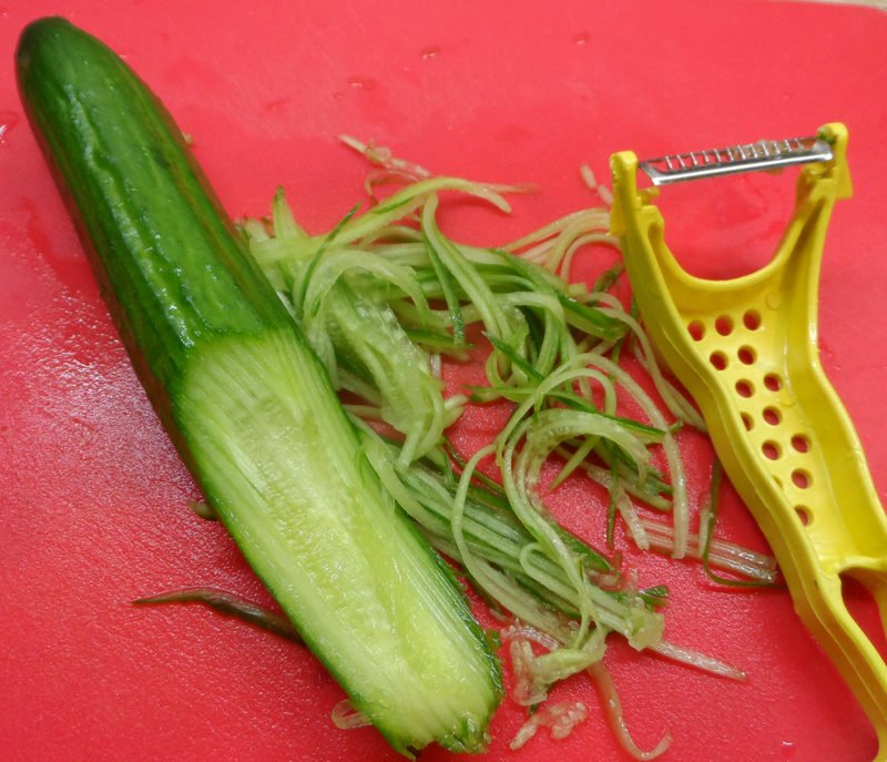 Étape 4 Coupez un concombre frais avec un couteau en fines lanières ou à l'aide d'un «déchiqueteur coréen».