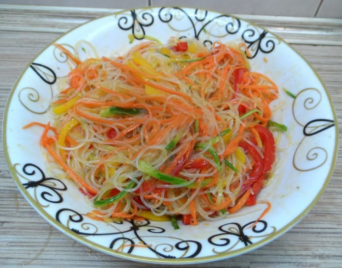 Étape 7 Ajouter le funchose tout préparé, la vinaigrette aux légumes, bien mélanger le tout.