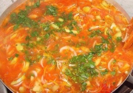 Étape 4 Saler, ajouter le houblon suneli, le persil haché, le sucre. Laisser mijoter pendant 30 minutes. Ajoutez du vinaigre en fin de cuisson. Mélangez.