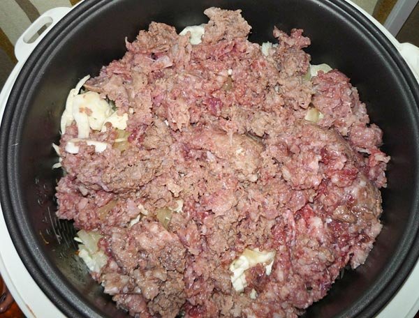Étape 7 Versez le contenu du bol multicuiseur avec de l'eau froide. Mélangez. Faites cuire en mode «multi-cuisson» à 110 degrés ou en mode «cuisson». Saupoudrer le plat fini avec des herbes hachées.