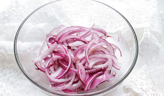 Étape 3 Épluchez l'oignon et coupez-le en fines rondelles.
