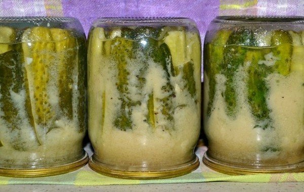 Étape 4 Ensuite, prenez les tranches de concombre de la saumure et placez-les le plus étroitement possible dans des bocaux stérilisés, versez la saumure. Ce sera légèrement nuageux car la moutarde a le temps de se dissoudre. Stérilisez les bocaux avec les concombres au bain-marie pendant 15 minutes, puis enroulez les couvercles hermétiquement.