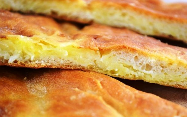 Étape 5 Aplatissez-le avec votre paume aussi fin que possible. Cela peut être fait directement sur la plaque de cuisson. Faire un petit trou au centre de la tarte et cuire au four préchauffé à 200 degrés pendant 25 minutes. Graisser la tarte finie avec du beurre et servir.
