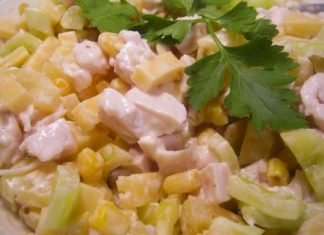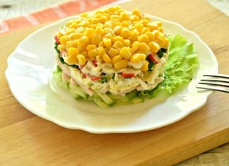 Salade aux bâtonnets de crabe, maïs et jambon