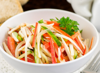 Salade de bâtonnets de crabe et de concombres frais