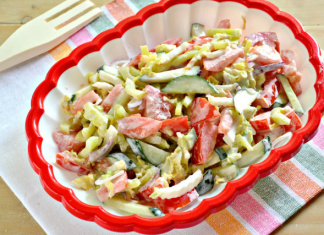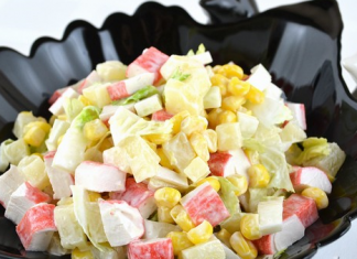 Salade de légèreté avec des bâtonnets de chou et de crabe