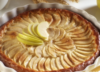 Tarte aux pommes fourrée à la crème sure