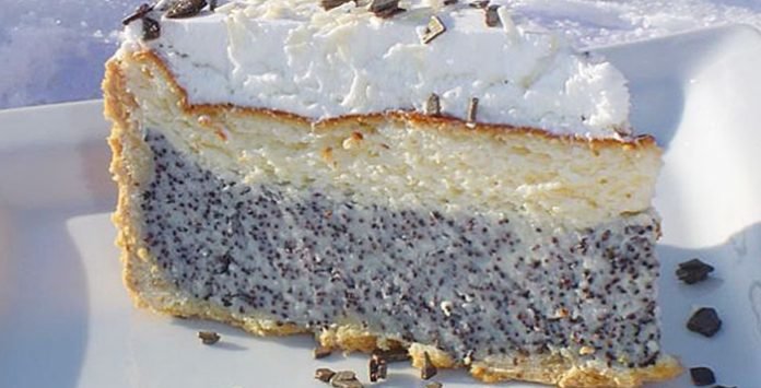 Étape 7 Sortez le gâteau aux graines de pavot du four, répartissez la garniture sur le dessus et laissez cuire encore 40 minutes. Vous pouvez saupoudrer le gâteau fini de sucre glace ou mettre de la crème fouettée dessus,