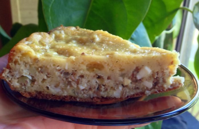 Étape 6 Cuire au four à 180 degrés pendant 30 à 40 minutes. Prêt à vérifier avec un cure-dent en bois ou une allumette: si le bâton est sec, le gâteau est prêt.