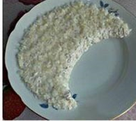 Étape 5 Maintenant, vous devez prendre un plat dans lequel la salade sera préparée. Mettez la viande de poulet en forme de croissant, graissez-la de mayonnaise.