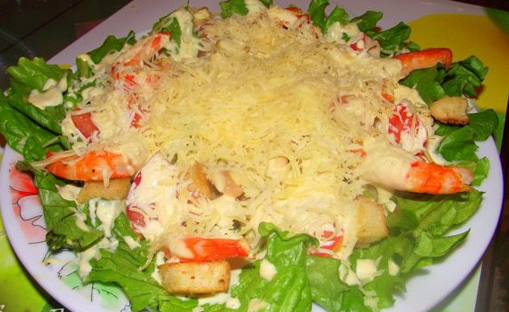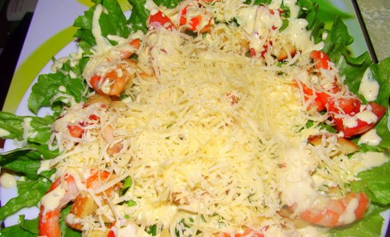 Étape 8 Versez un peu de sauce sur les feuilles, mettez les croûtons par dessus.