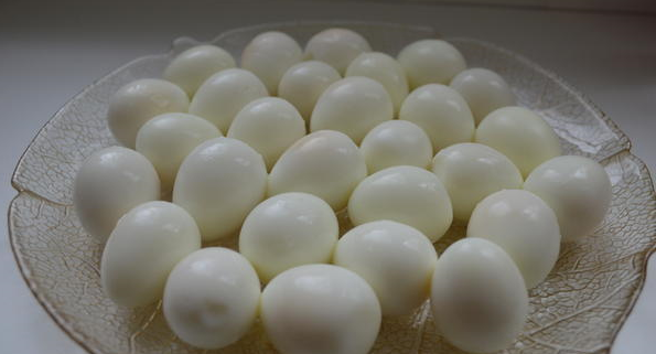 Étape 4 Faire bouillir les œufs de caille, peler. Coupez une partie des œufs pour la salade et une autre pour la décoration.