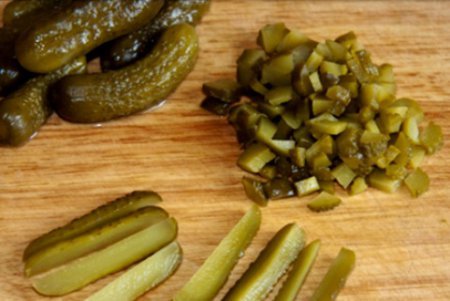 Étape 6 Mélangez le foie, les oignons avec les carottes, les concombres. Assaisonner avec de la mayonnaise et mélanger.