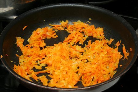 Étape 5 Faites frire les oignons, les carottes dans une casserole dans l'huile végétale. Cool.