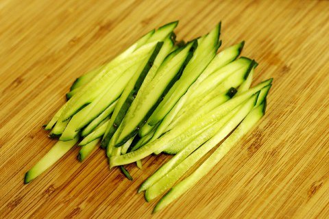 Étape 3 Laver les concombres et les couper en fines lanières.