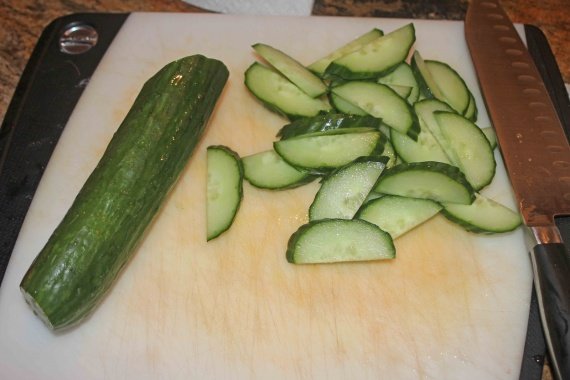 Étape 2 Lavez les concombres et coupez-les en lanières ou en petites tranches minces.