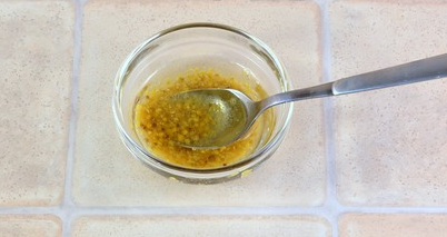 Étape 5 Pour la vinaigrette: mélanger l'huile végétale, la moutarde et le vinaigre.