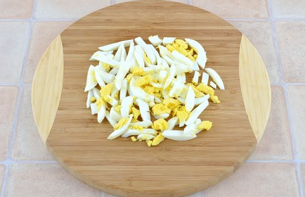 Étape 3 Faites bouillir les œufs dans un endroit frais, pelé et coupé en longs morceaux.
