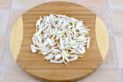 Étape 5 Mettez le jambon, le poulet, les œufs, les oignons et les champignons dans un saladier profond. Poivre, sel au goût. Assaisonner la salade avec de la mayonnaise et mélanger.