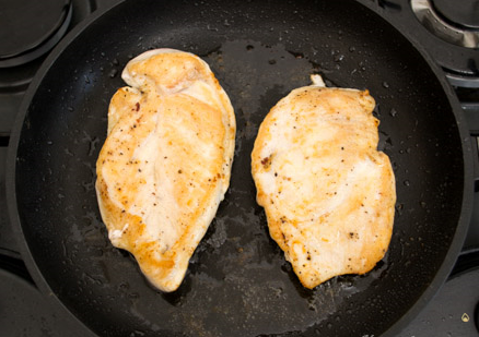 Étape 2 Couper le filet de poulet dans le sens de la longueur en deux assiettes, saler, poivrer des deux côtés. Faire frire dans une poêle où il y avait du bacon des deux côtés à feu moyen. Transférer sur une serviette en papier, puis couper en cubes.