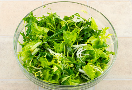 Étape 7 Laver les feuilles de laitue, sécher, déchirer en tranches et ajouter la moitié de la vinaigrette. Mélangez.
