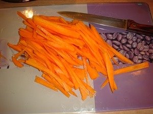 Étape 4 Peler les carottes et les couper en lanières.