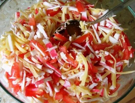Étape 5 Mélangez tous les ingrédients. Salade de saison avec de la mayonnaise. Saler, poivrer au goût.
