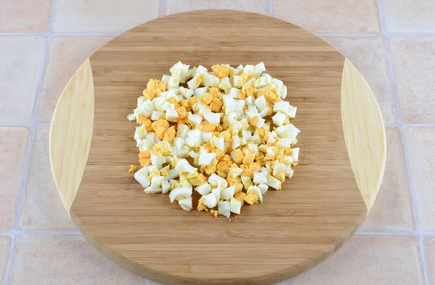 Étape 1 Faire bouillir les œufs dans un raide, peler et couper en cubes.