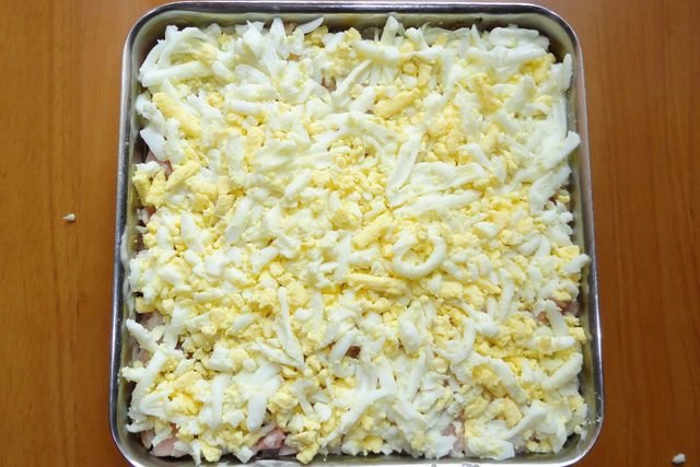 Étape 7 Posez les œufs par-dessus, graissez avec de la mayonnaise.