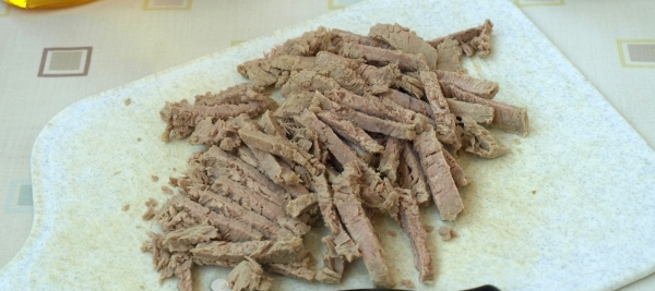 Étape 3 Couper le boeuf bouilli en fines tranches.