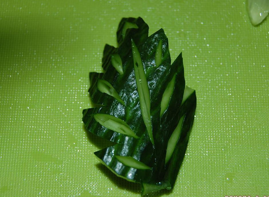 Étape 17 Ensuite, coupez de petits morceaux de concombre et découpez les feuilles.