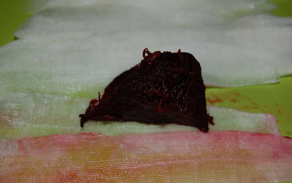 Étape 14 Avec un morceau de betterave, coloriez le radis en passant simplement la betterave le long de la bande.