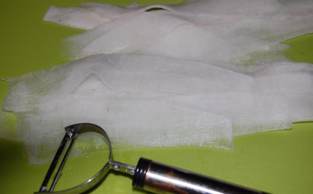 Étape 13 Faire des roses à partir de daikon. À l'aide d'un éplucheur, coupez le radis en fines lanières.
