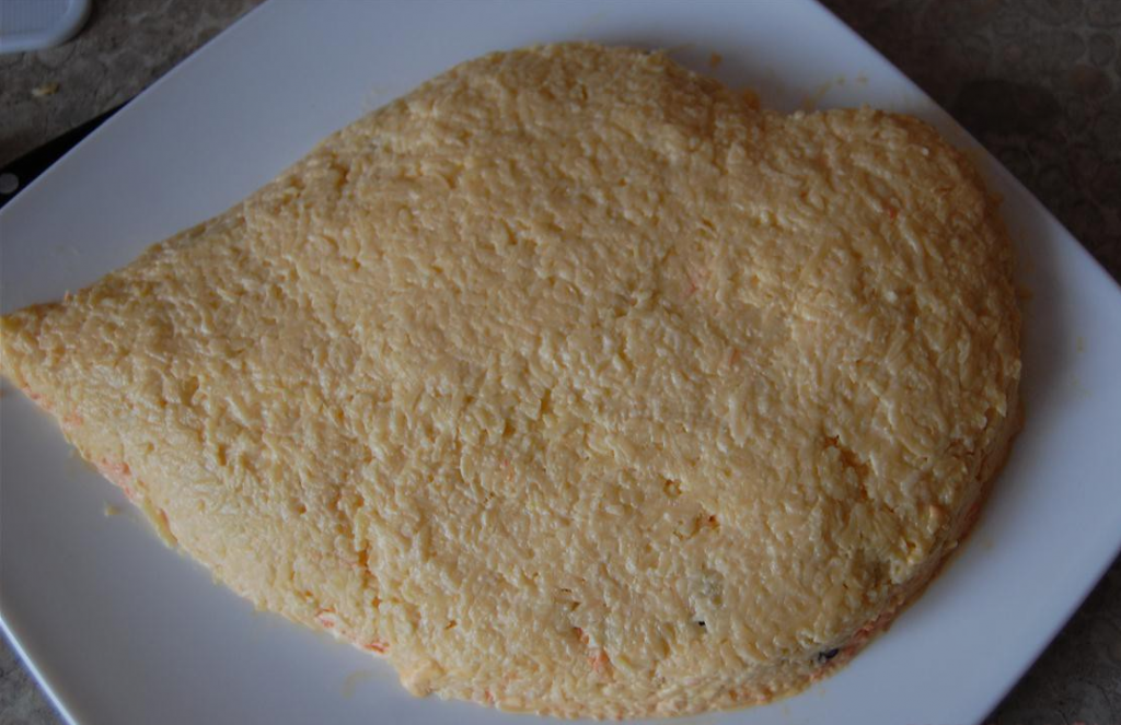 Étape 11Mettez les betteraves avec les noix dans une troisième couche, formant les lèvres.