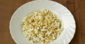 Étape 4 Faire bouillir les œufs dans un raide, peler et couper en cubes.