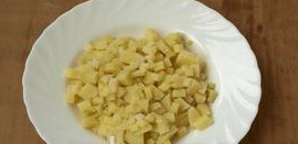 Étape 1 Faire bouillir les pommes de terre, les peler et les couper en cubes.