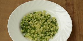 Étape 5 Ensuite, coupez le concombre en cubes.