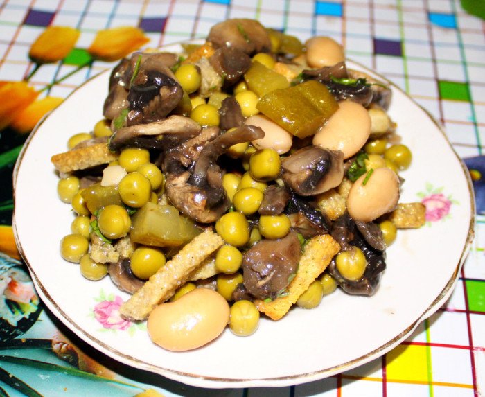 Étape 5 Ajouter les concombres hachés, les haricots et les pois verts aux champignons refroidis.