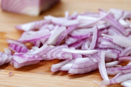 Étape 4 Couper l'oignon rouge en fines demi-anneaux.