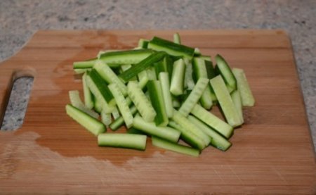 Étape 6 Concombres coupés en lanières.