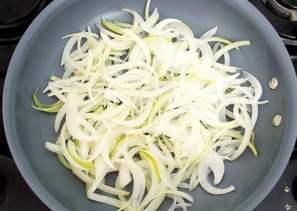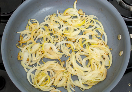 Étape 1Épluchez l'oignon, coupez-le en fines rondelles. Faites chauffer un peu d'huile végétale dans une casserole, mettez les oignons.