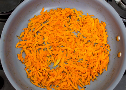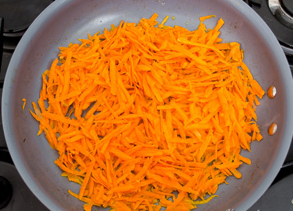 Étape 3 Peler les carottes, râper, mettre dans une casserole.