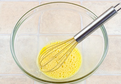 Étape 5 Préparez une crêpe: secouez l'oeuf et une petite pincée de sel avec un fouet.