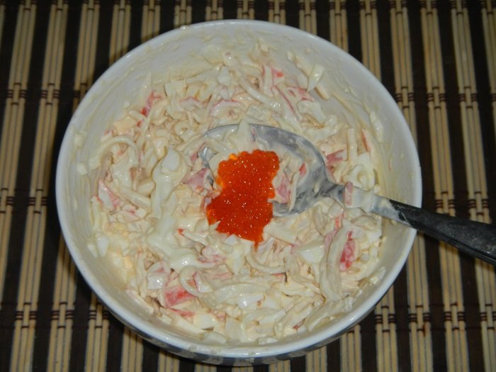 Étape 5 Ajoutez un peu plus de mayonnaise et 1 cuillère à soupe. une cuillerée de caviar rouge.
