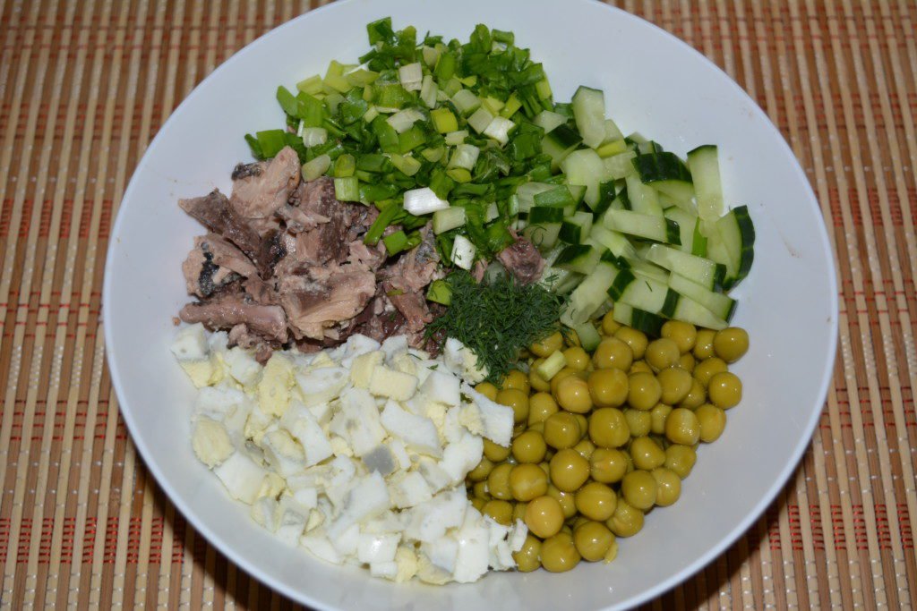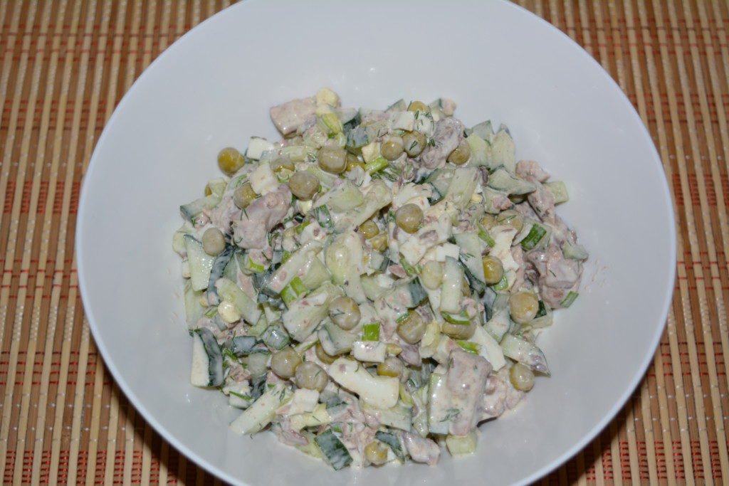 Étape 6 Saler la salade, assaisonner de mayonnaise et mélanger doucement pour ne pas abîmer les morceaux de thon.
