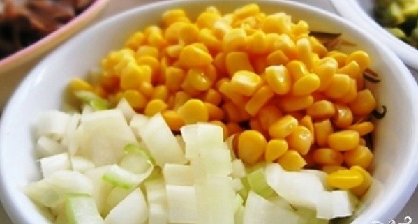 Étape 5 Ouvrez une boîte de maïs, égouttez le jus. Hacher finement l'oignon.