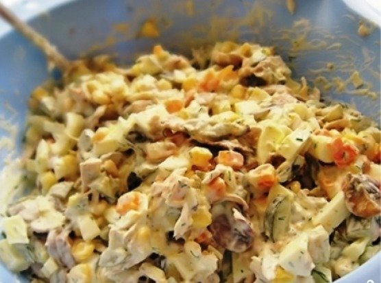 Étape 8 Assaisonner la salade avec de la mayonnaise à l'ail. Mélangez.